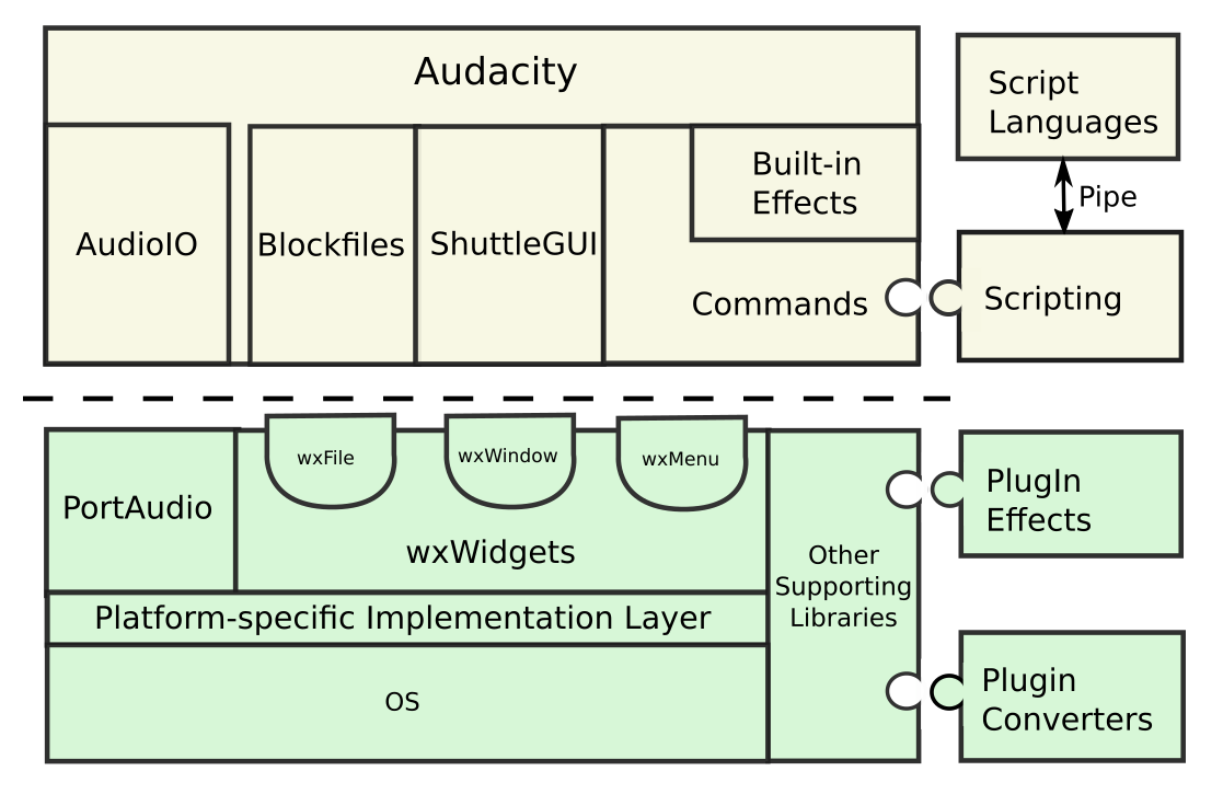 Αρχιτεκτονικά, τα υψηλότερα επίπεδα του λογισμικού είναι σαν ένας “καθρέφτης” των κατωτέρων επιπέδων του. Δηλαδή, όπως φαίνεται και στην εικόνα παραδειγματικά, το σύστημα του Blockfile είναι βασισμένο στο wxFile του wxWidgets.
